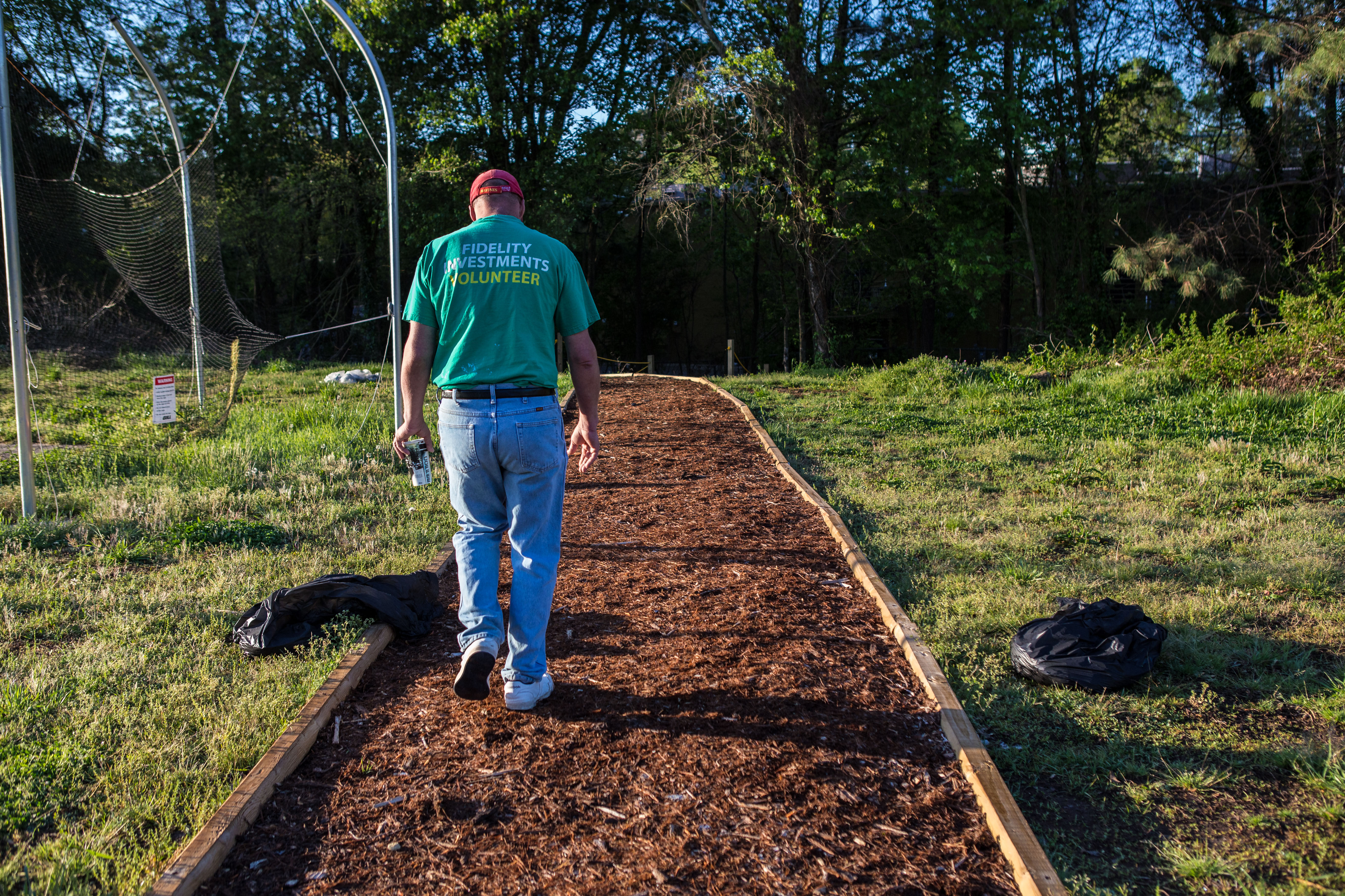 Appropriately wearing a Fidelity Investments T-shirt, courtesy of the local investment group that has lived up to its name by investing in Lowe’s Grove’s continuous efforts to operate and thrive as one of Durham Public Schools’ STEM Magnets, Coach Ware proudly leads the way, highlighting the progress he and his students are making in their self-initiated environmental protection acts.