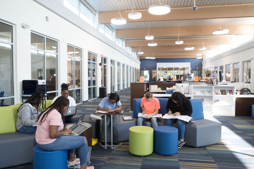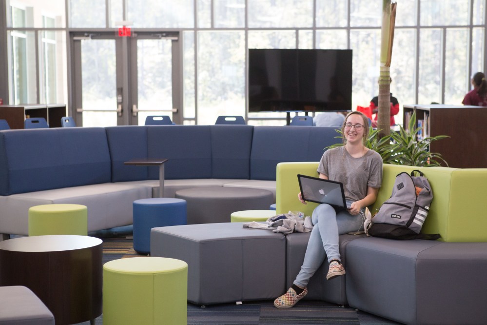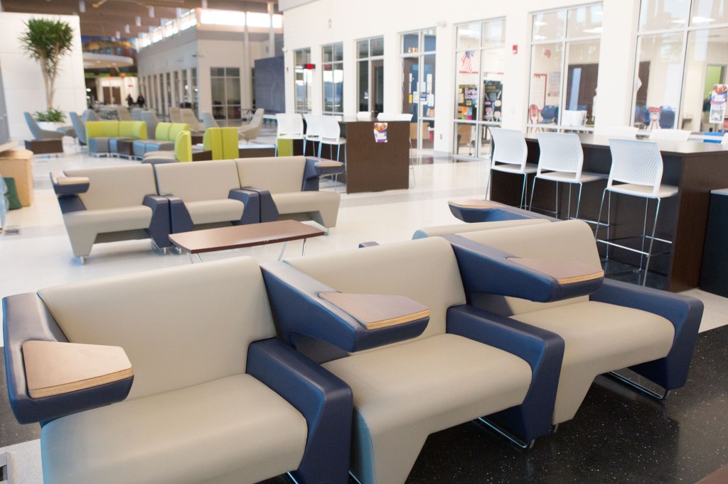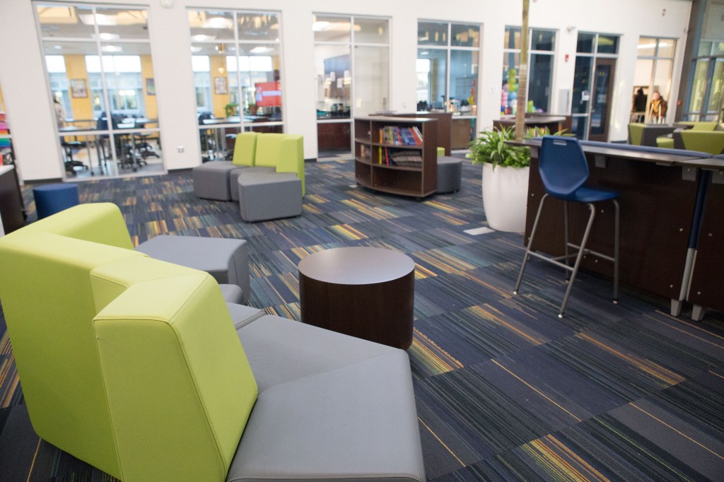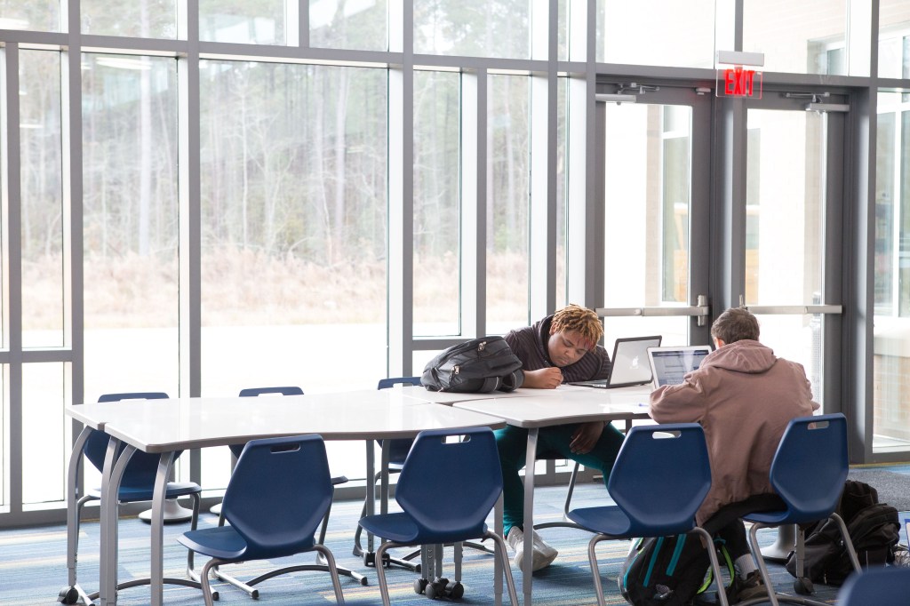 Now reserved only for dual-enrollment students taking online courses through Lenoir Community College, the main common area is occupied each class period by about 20- 25 students or so.