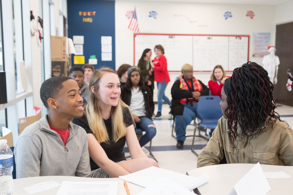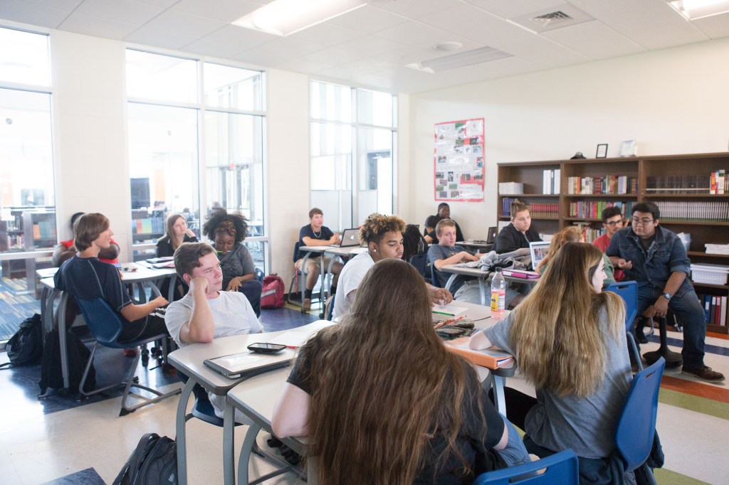Flexible learning spaces should offer fun, student-centered learning opportunities that generate meaningful social engagement. Vygotskian approaches to teaching and learning value social construction and embed sufficient time for students to make purposeful connections with peers. JSHS teachers’ instructional decisions demonstrate that they understand adolescents form deeper opinions of themselves, the content, and the world around them. Teachers are structuring learning opportunities that require more interdependence, cooperation, and collaboration than ever observed before. For example, Caroline Kittrell is known by colleagues and loved by students for her project-based approaches to social studies. Her students say they prefer using the flexible learning spaces throughout the school to work on projects together and need more opportunities to do so.